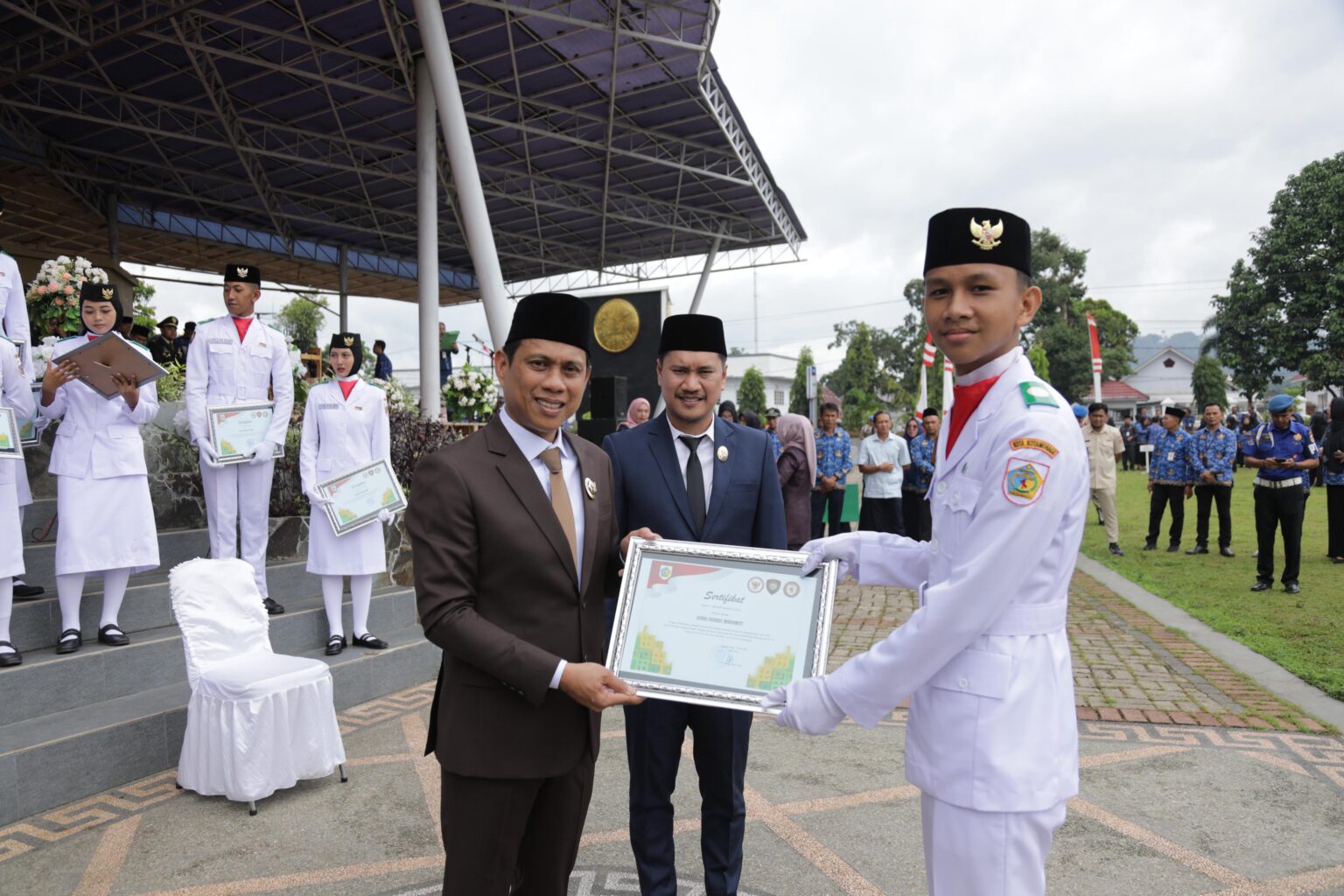 “Pada hari ini, Senin, 2 Juni 2025, saya, dr. Weny Gaib, Sp.M, Wali Kota Kotamobagu, menetapkan Pasukan Pengibar Bendera Pusaka Kota Kotamobagu Tahun 2024 menjadi Purna Paskibraka dan Duta Pancasila Kota Kotamobagu Tahun 2025,” ujar Wali Kota.